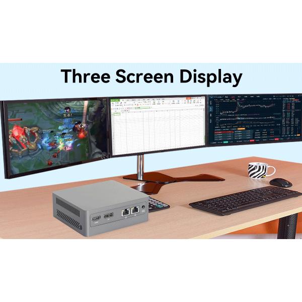 This home office mini PC equipped with 1*DP and 1*HDMI ports, which can support three displays at the same time and can easily realize three 4K HD displays.